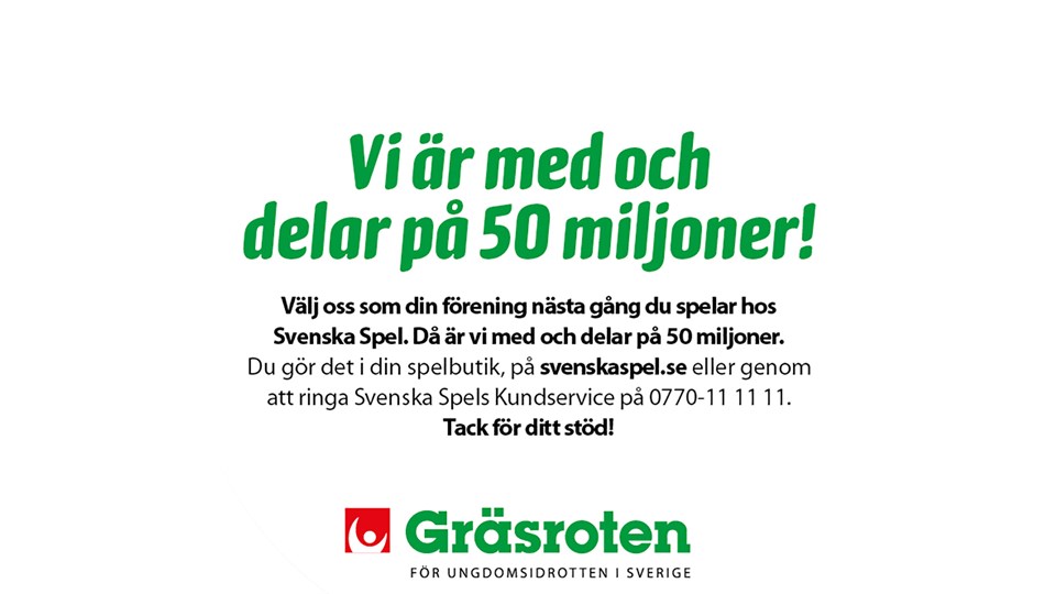 Hjälp IFK Ystad FK att ta del av de 50 miljoner kronorna som Svenska Spel delar ut till svensk idrott varje år. Svenska Spel har en satsning som kallas “Gräsroten”, där företaget delar ut 50 miljoner kronor årligen till svensk idrott. Satsningen går ut på att alla som spelar hos Svenska Spel med Spelkortet är med och bestämmer till vilka klubbar pengarna ska gå. IFK Ystad FK:s ungdomssektion fick exempelvis 26 254 kronor i början av november 2017. Välj IFK Ystad FK som den klubb du vill att pengarna ska gå till. Koppla ditt spelkort så går det per automatik. Du gör det i din spelbutik eller direkt på webben. Du kan också ringa Svenska Spels kundservice på 0770-11 11 11. Ditt stöd betyder mycket för IFK:s ungdomsverksamhet – och det kostar dig inget extra!